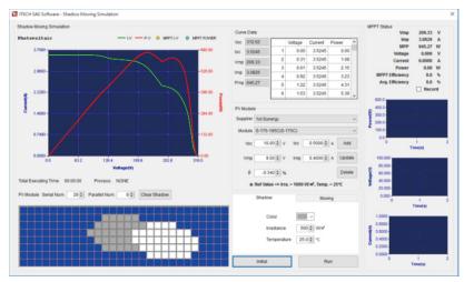 ♦ 图形化的软件操作界面,实时测试并显示光伏逆变器的MPPT状态